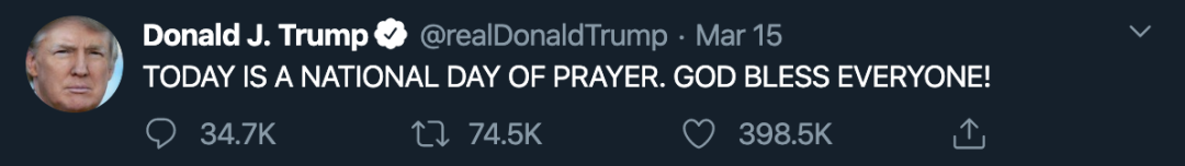 全大写字母的「上帝祝福每个人」,外加惊叹号。