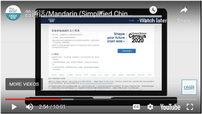 美国是一个多元化的国度,为了不让语言不通成为人口普查的障碍,人口普查局在线上平台提供了12种非英语语言的电子问卷,其中包括简体中文。人口普查电话作答专线同样提供这12种非英语语言协助,其中汉语设有两个专线:844-391-2020(国),844-3982020(粤)。
