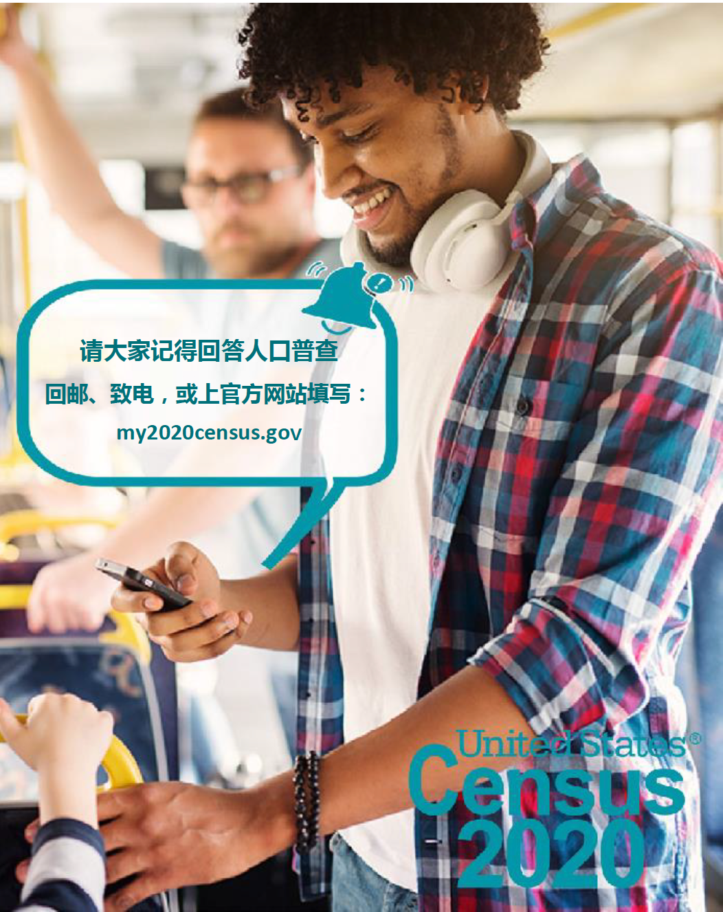 为了让我们的民众被算在统计内,请大家务必以上网、打电话或者回邮的方式自主回答人口普查,以确保我们的社区能拿到我们需要的资金,才能维持我们未来十年各项福利和服务的运营。回答人口普查既简单、又安全,更重要!详情请见 www.2020census.gov
