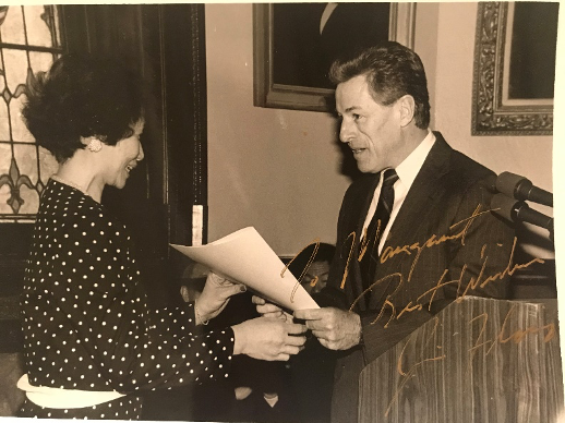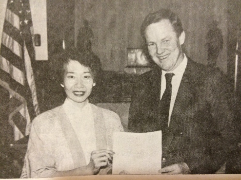 左上:1993年5月新州州长Jim Florio为林杰辉女士颁奖;左下:金(Tom Kean)州长向林杰辉女士颁发举办“亚州文化节”证书;右:惠特曼(Christine Whitman)州长向林杰辉女士颁发举办“亚州文化节”证书。