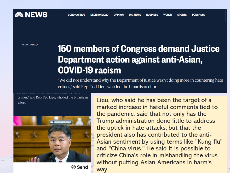 - https://lieu.house.gov/media-center/press-releases/rep-lieu-leads-150-member-letter-urging-doj-condemn-covid-related-anti