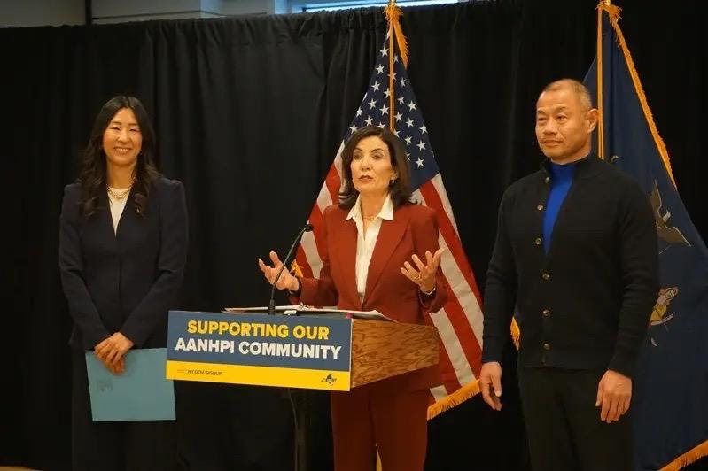 New York Governor Hochul signed the AANHPI Education Equity Act in Flushing, directing the state education department to review Asian American and Pacific Islander history representation in public school curricula and establish an advisory committee.