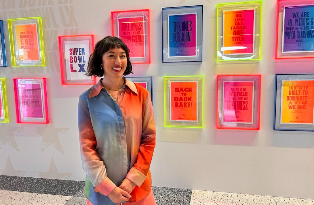 Bay Area Chinese American artist Erin Fong created Super Bowl LX’s official visual identity through hand-set letterpress printing, marking the first time an AAPI designer held this role in the NFL’s local artist partnership program.